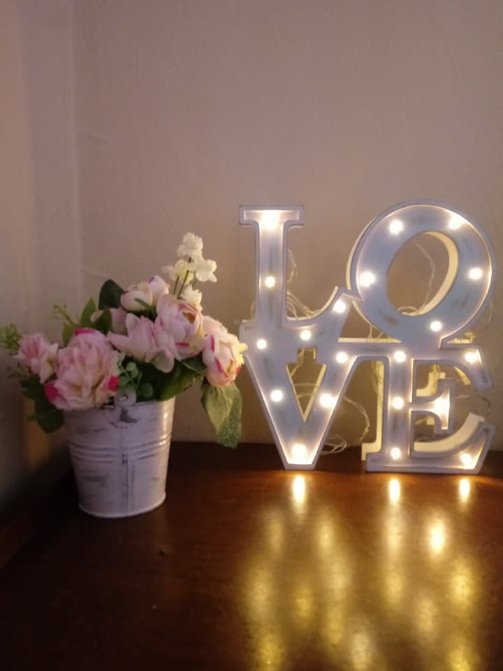 Lámparas enj fibrofácil, pintadas y decoradas, con luces led a pilas o enchufe